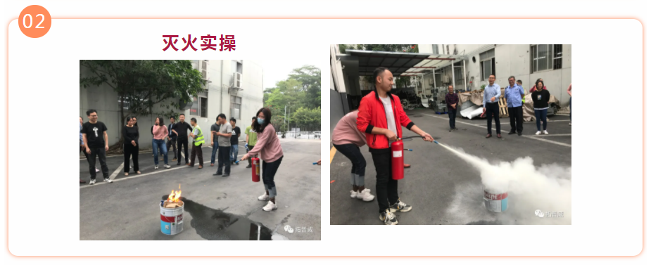 現場活動中,楊經理對滅火器的使用進行實操示范,大家陸續分組滅火,以達到人人都能掌握滅火器使用的目的。
